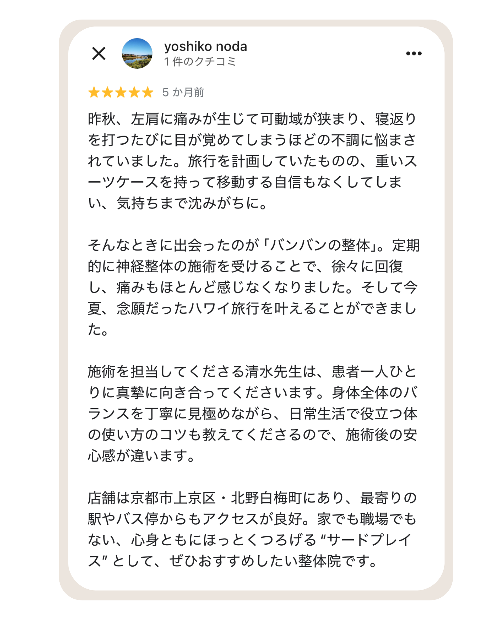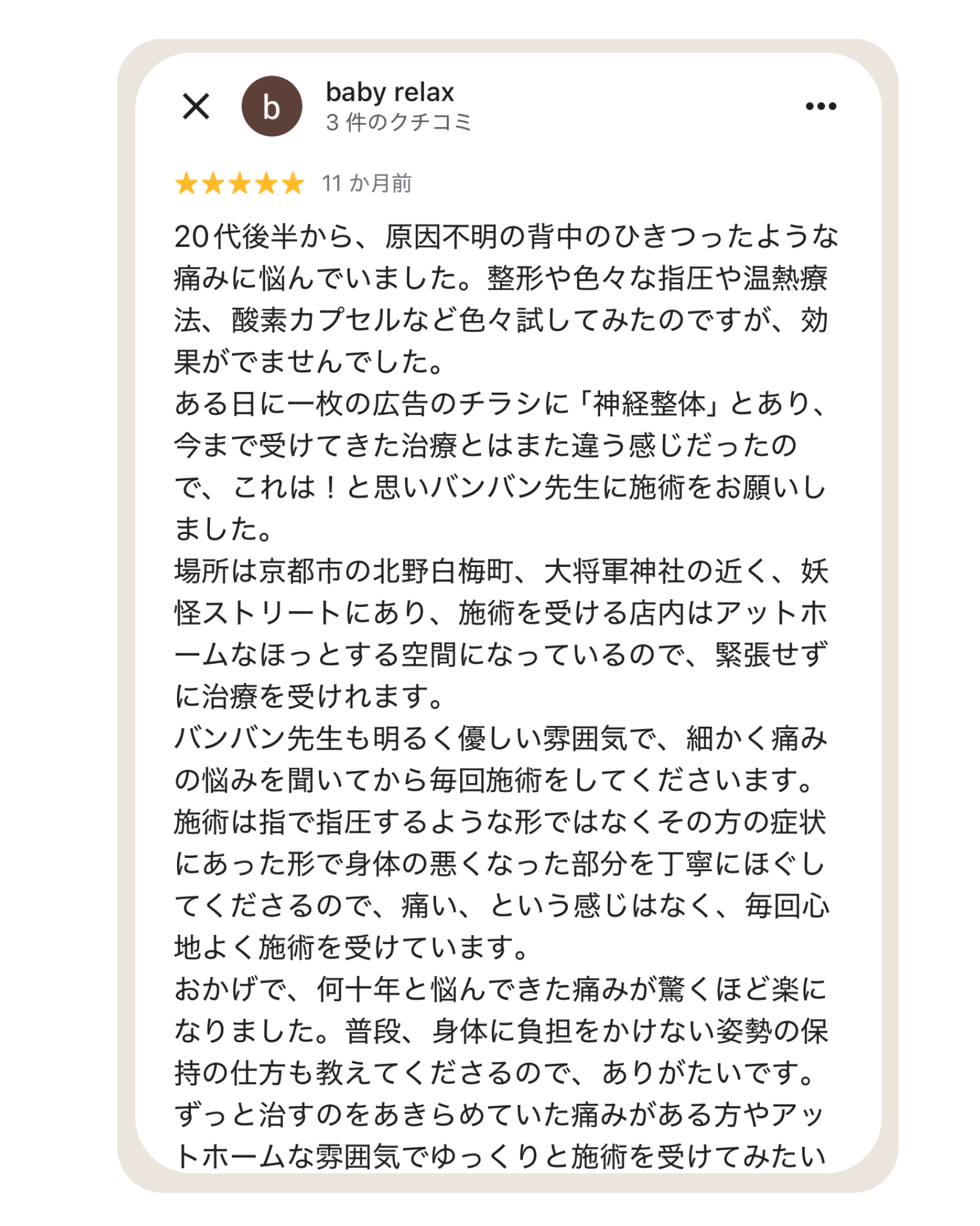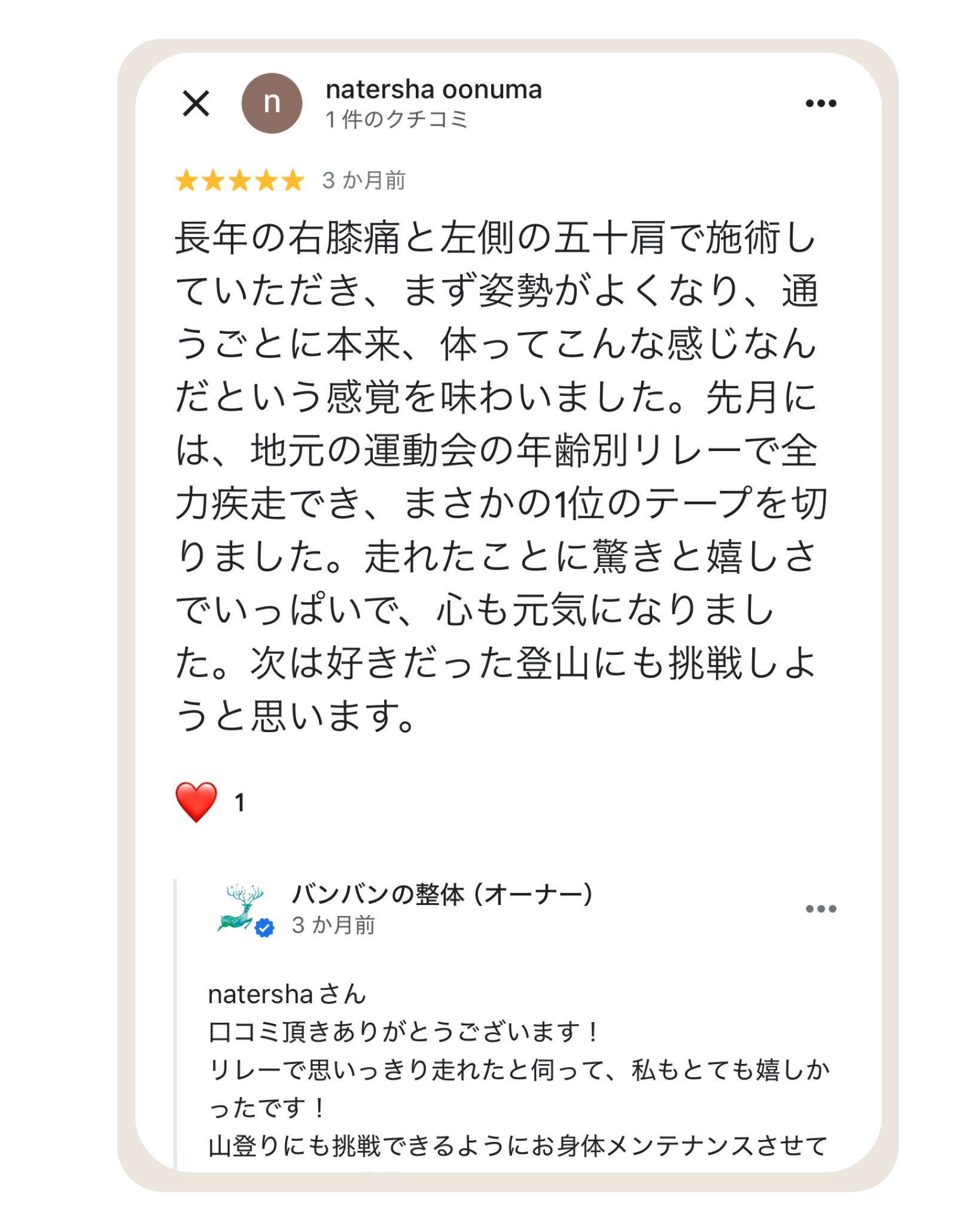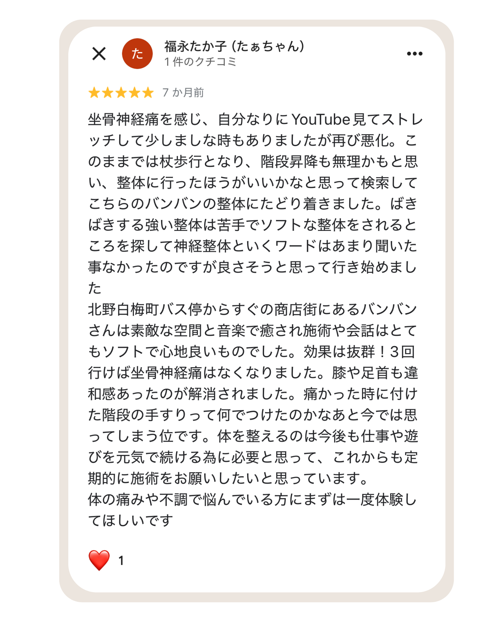 年間1,000名を超える方にご来院いただいております Googleマップで頂いた口コミの一部をご紹介します